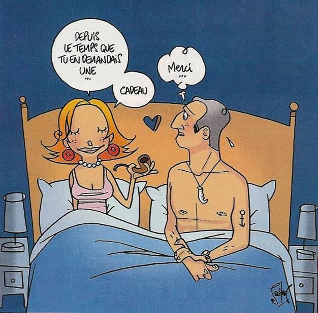 moment où il s’apprête à la pénétrer, elle lui demande : – T’as pas le sida j’espère ? – Mais non, ne t’en fais pas. Ils font alors l’amour sauvagement. Soudain, en plein milieu de l’acte, elle demande à nouveau : – Tu es vraiment sûr de ne pas avoir le sida ? – Puisque je te dis que non ! Et pourquoi cette question ? – Parce que ça me ferait chier de le choper une deuxième fois en une semaine ! |