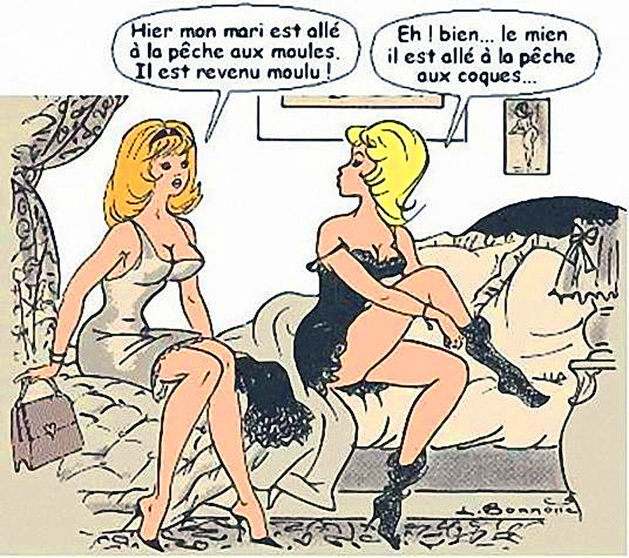 café quand deux hommes rentrent. La première dit à l'autre : - C'est marrant, les deux hommes qui viennent de rentrer .... et ben celui de gauche c'est mon mari et celui de droite mon amant. - C'est comique, moi c'est juste l'inverse ! |